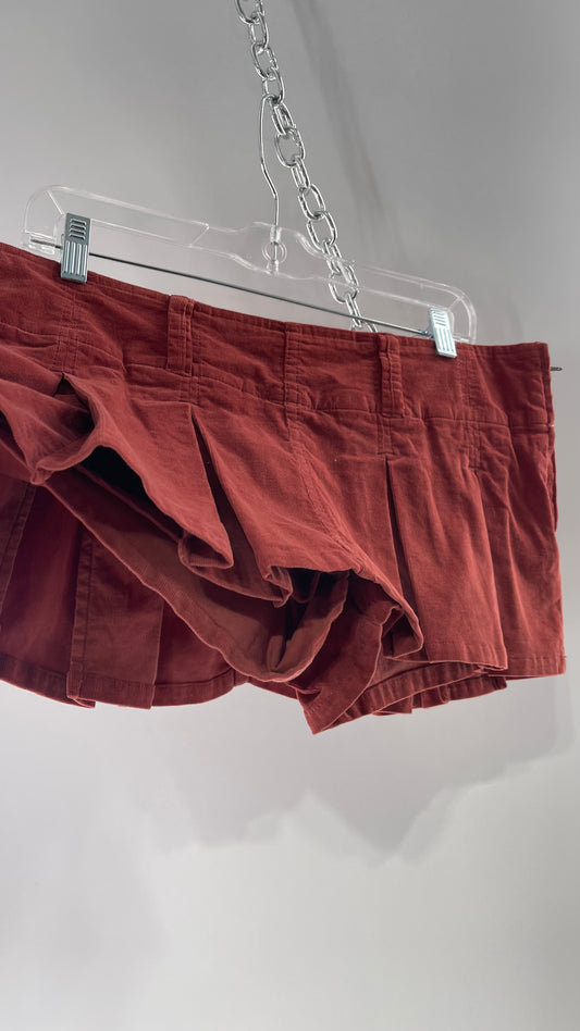 Free People Corduroy Terracotta Pleated Micro Mini Skirt with Tags Attached (6)