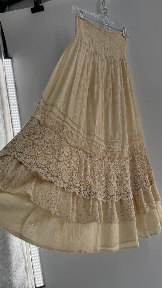 Free People Beige Gauze/Cotton Full Length Skirt Lined with Lace (XS)