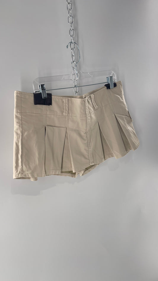 Free People Off White Pleated Vegan Leather Ultra Micro Mini Skirt with Hidden Built in Shorts (12)