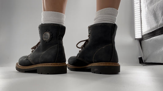 Vagabond Leather Lace Up Combat Charcoal Boots - Size 8