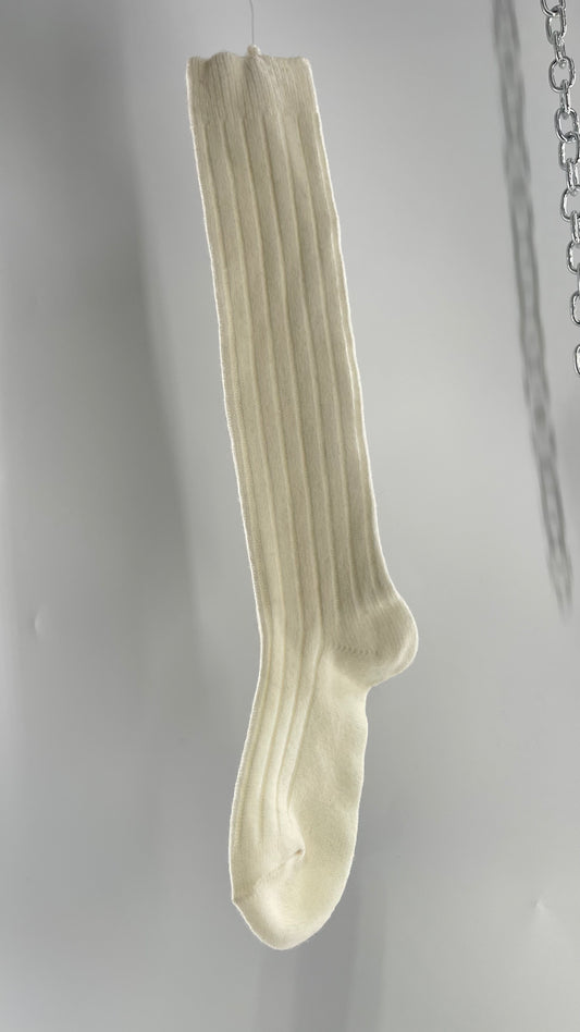 Free People Off White Ribbed Knee/Thigh High Socks