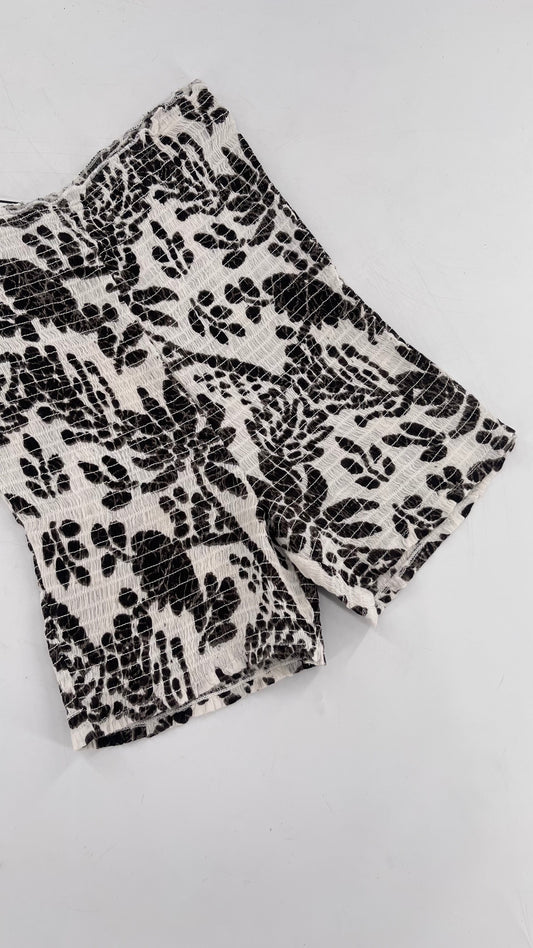 Free People White/Black Patterned Smocked Shorts (XS/S)