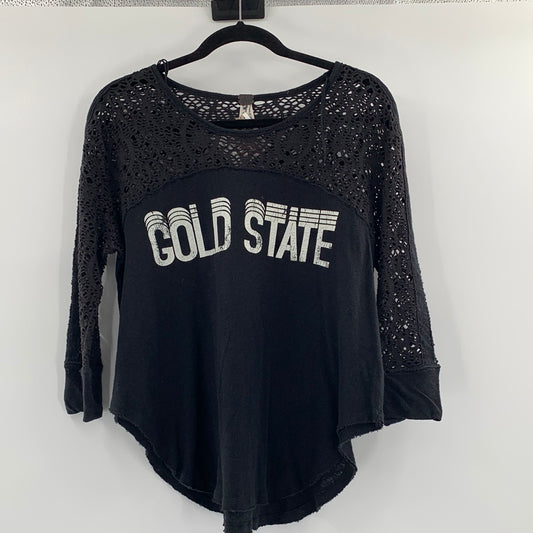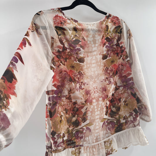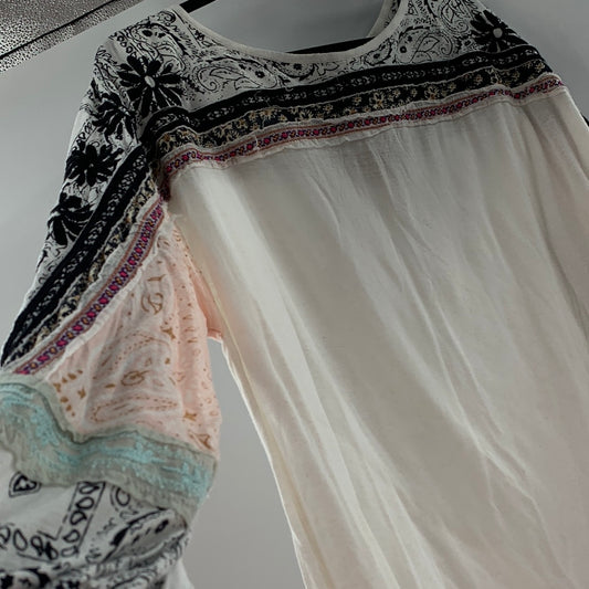 Free People White Bubble Hem Blouse with Linen Embroidered Bell Sleeves (Medium)