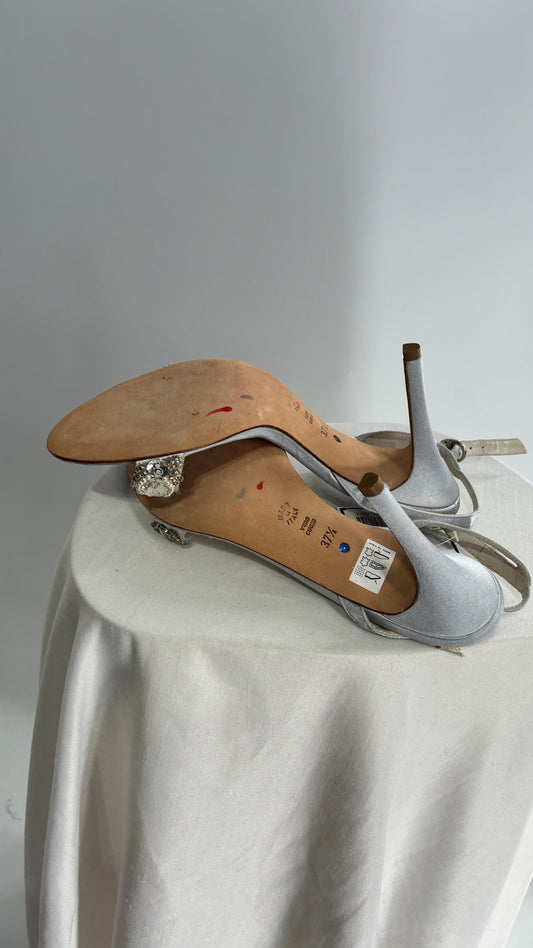 SOMETHING BLEU Grey Blue Round Toe Heels with Beaded Strap (37.5)