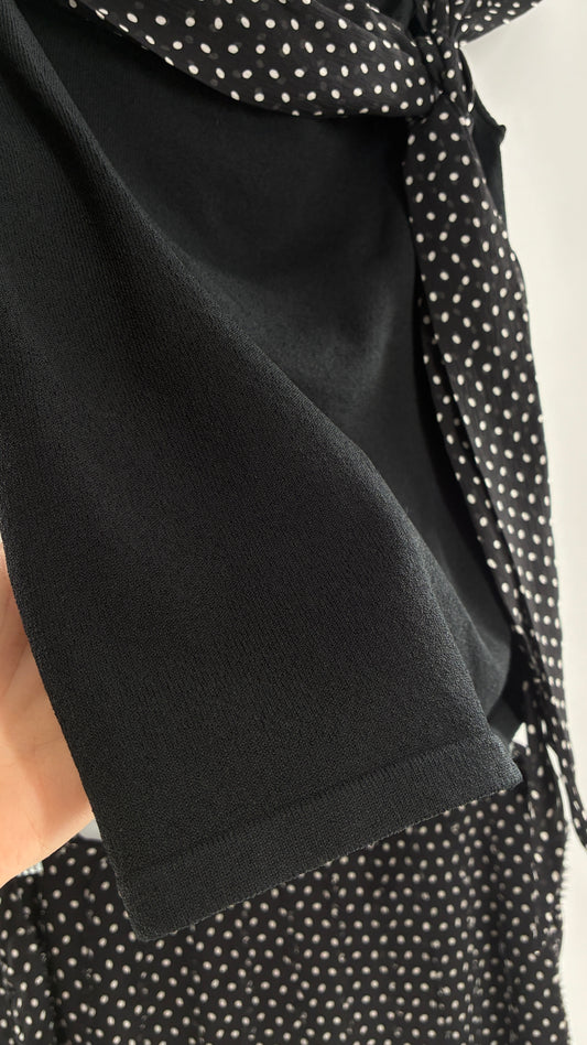 Vintage DANA BUCHMAN 100% Silk Polka Dotted Fringe Skirt and Off the Shoulder Top (Medium)