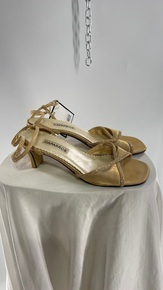 Vintage CAPARROS Champagne Square Toe Kitten Heel with Beading (7.5)