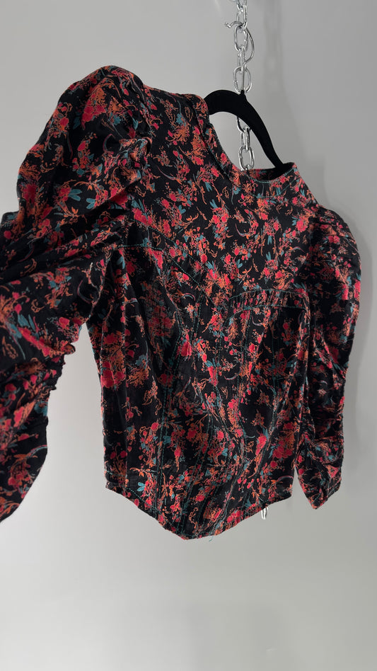 Free People Kiss The Sky Ribbon Bust Floral Prairie Top (Medium)