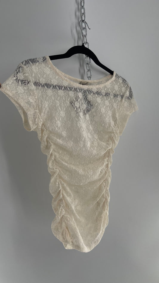 Intimately Free People Lace Ruched Sheer High Neck T Shirt (Small)