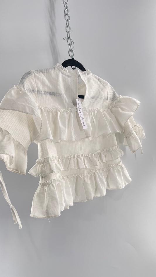 For Love and Lemons English Factory White Ruffle Cloud Blouse with Tags Attached (XS)