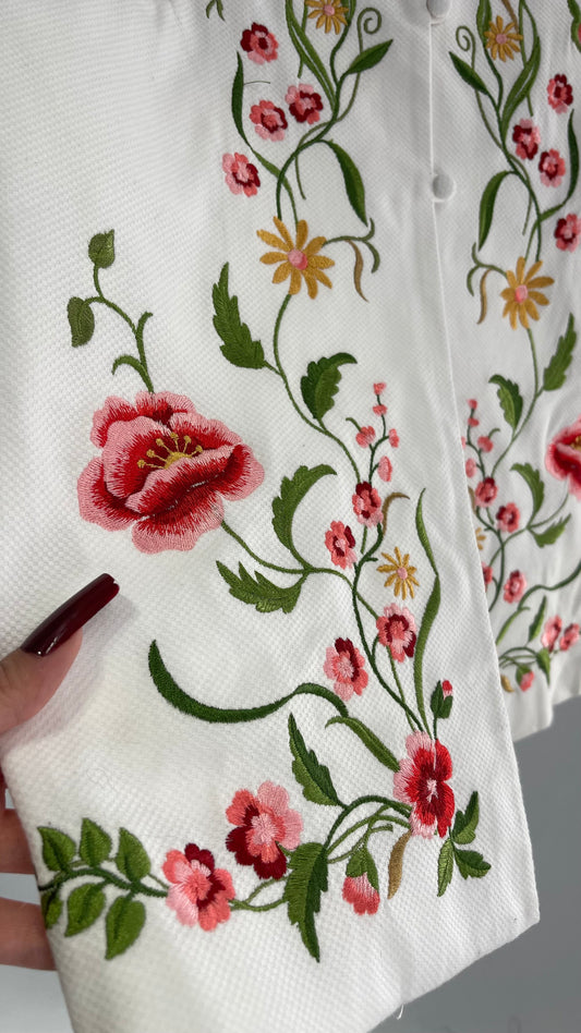 VICTOR COSTA Occasions White Coat with Embroidered Floral Details (Large)