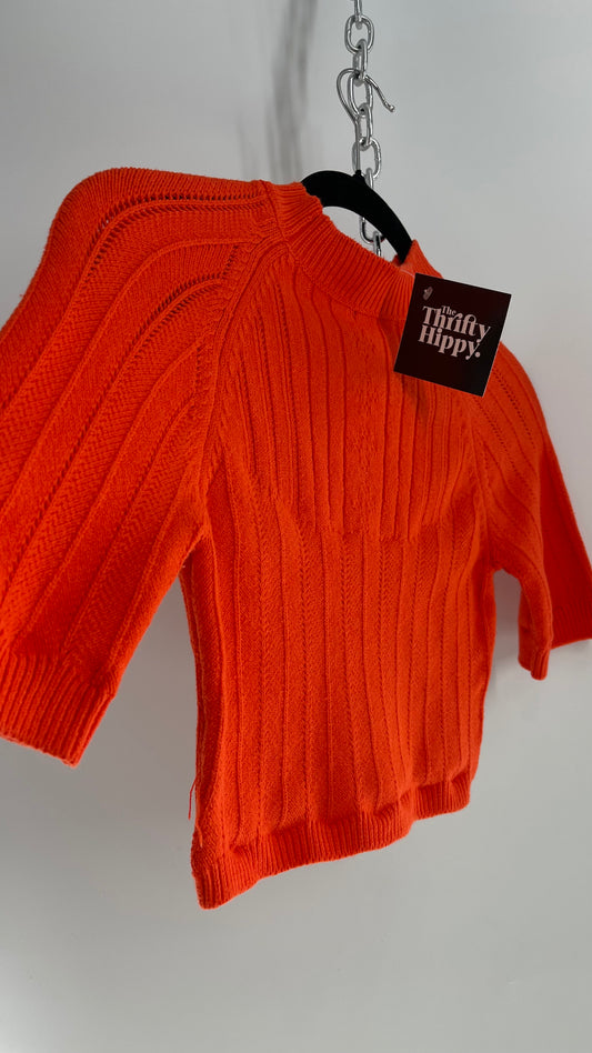 Free People Orange Knit Mock Neck Sweater with Keyhole Open Back (Medium)