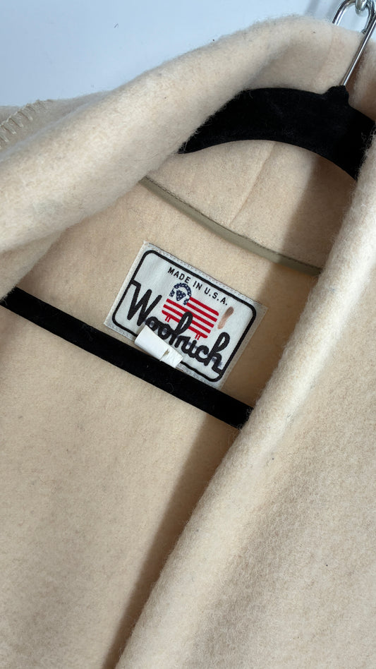 Vintage WOOLRICH Off White 100% Wool Striped Overcoat with Belt Loops (S/M)