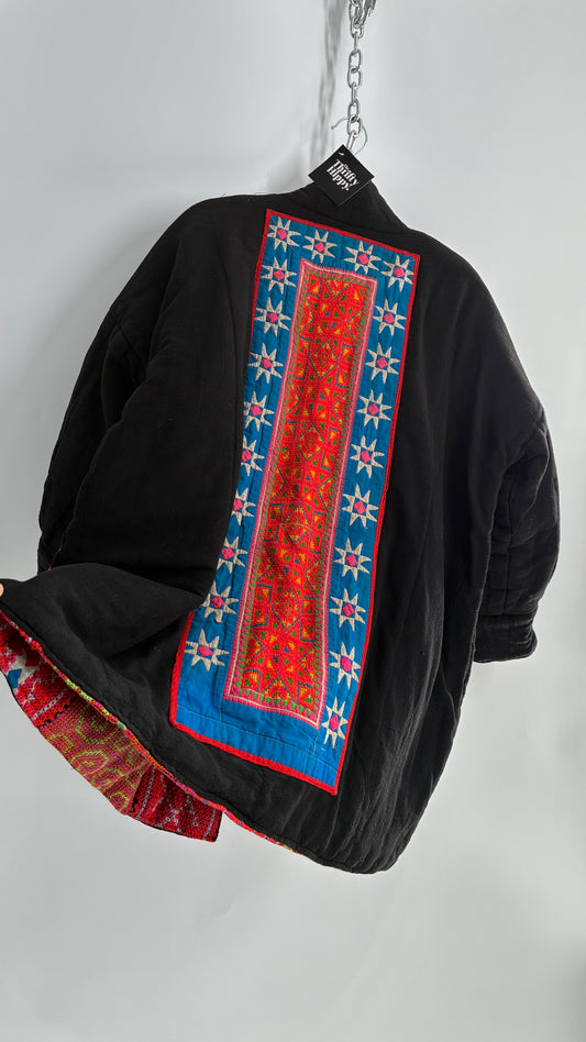 One Size Neon Pink Fully Embroidered and Quilted Reversible Puff Sleeve Coat (Large)