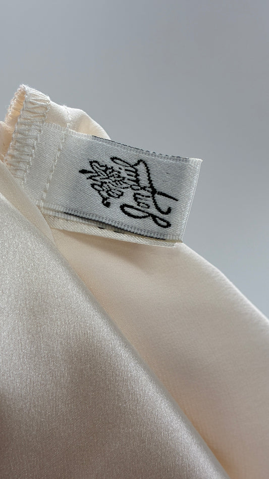 Vintage JONQUIL 100% Silk Gown with Heavy Lace Appliqués and Low Cut Sheer Back (Medium)