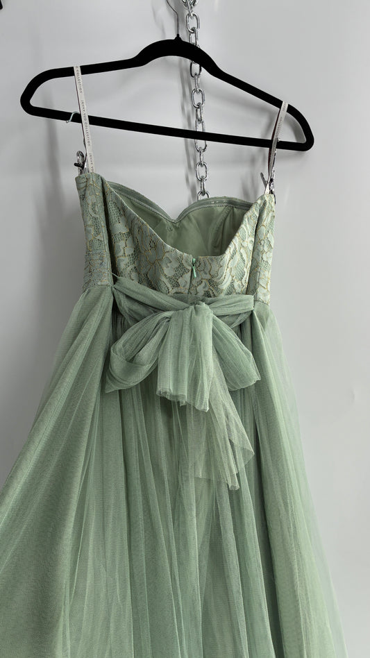 Jenny Yoo Seafoam Green Tulle Full Length Dress with Lace Corset Bodice (8)