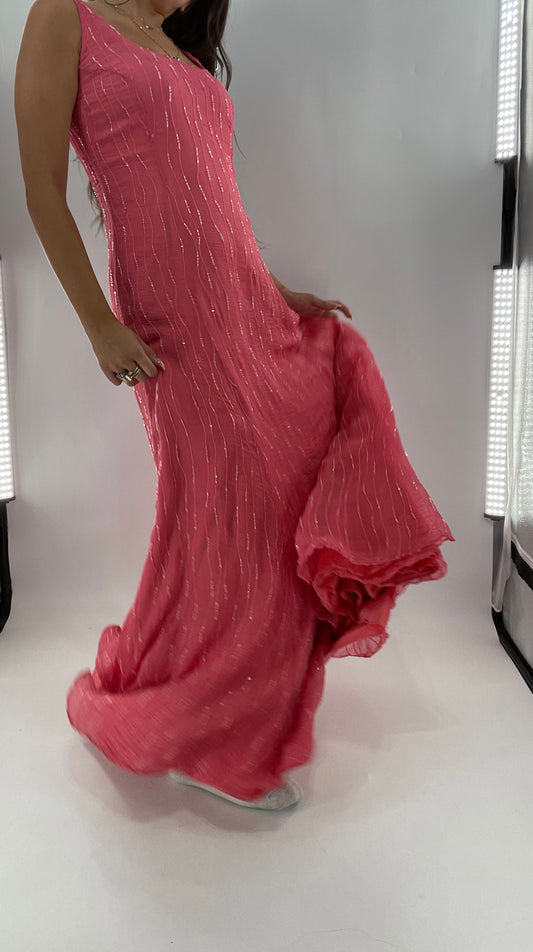 Vintage 1990s Clifford Michael Pink Beaded Crimped 100% Silk Maxi (10)