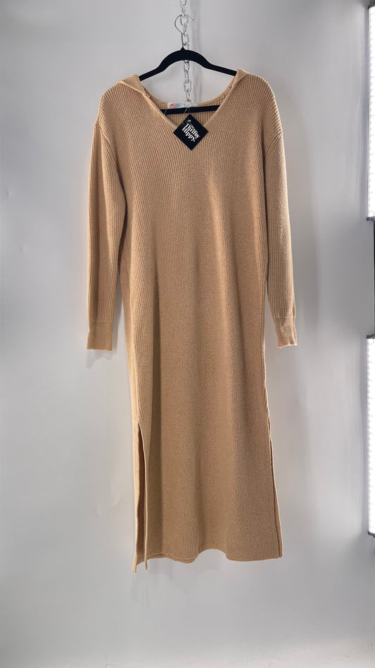 Free People Flook Beige Heavy Weight Crochet Granny Patchwork Overall Dress (Small)