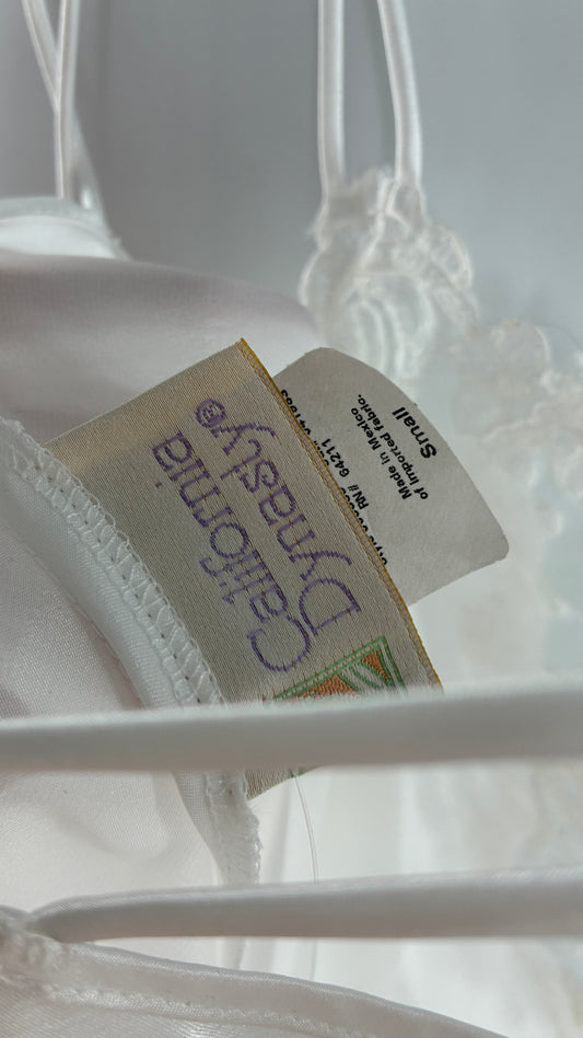 Vintage California Dynasty White Glossy, Silky Night Gown Style Dress with Sequined Lace Bustline (Small)