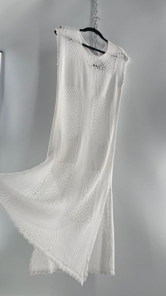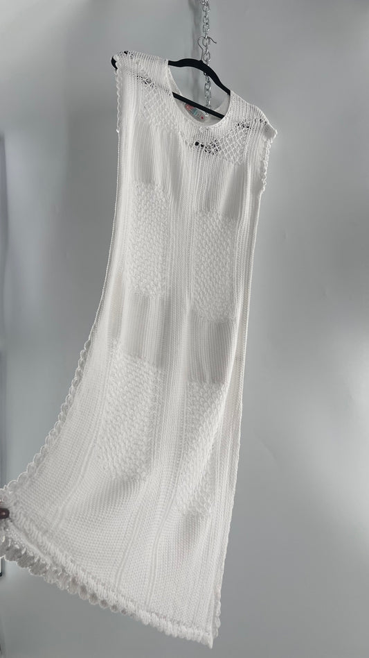Free People Beige Crochet Knit Máxi Dress (Large)