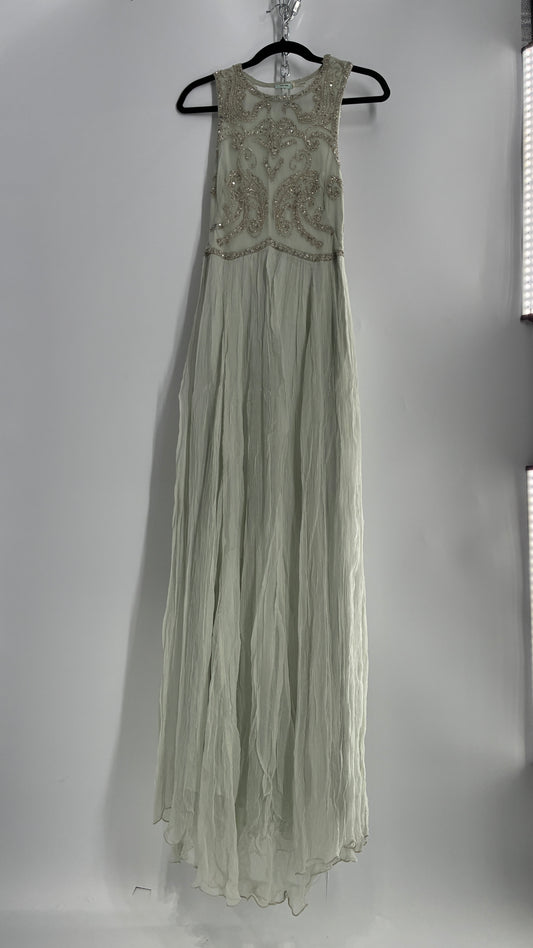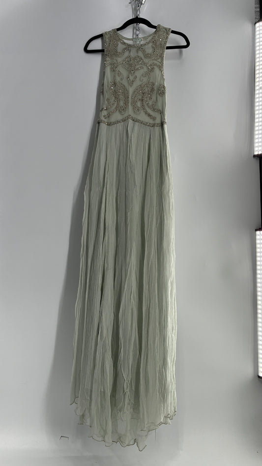 Kimchi Blue Light Greyish Seafoam Green Crimped Gown with Beaded Bodice and Sheer Back (6)