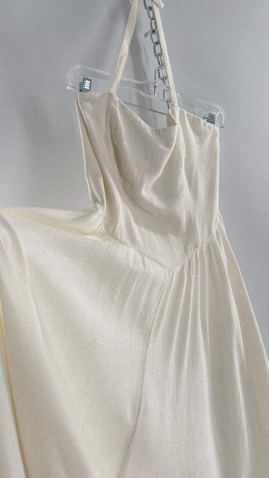 Free People 100% Cotton White Halter 1950s Circle Style Dress (Small)