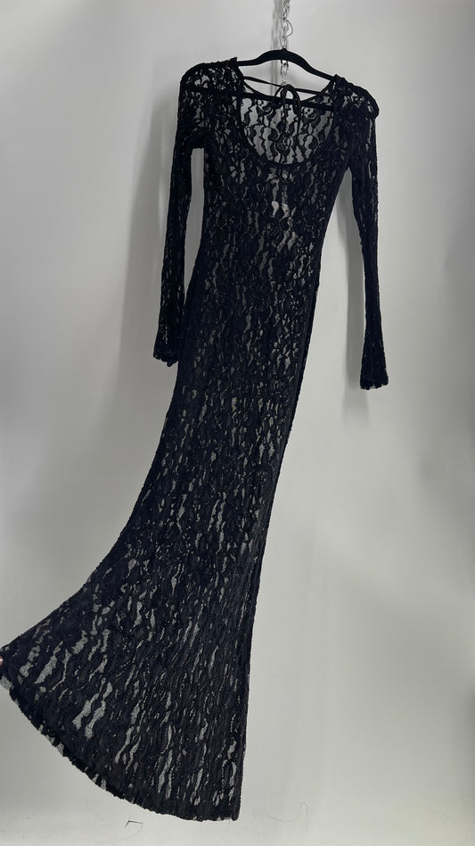Forever 21 Black Lace Long Sleeve Full Length Dress with Tags Attached (Small)