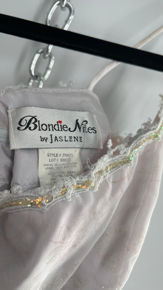 Vintage 1990s BLONDIE NITES by Jaslene Off White/Light Lilac Gown with Lace Trim (5)