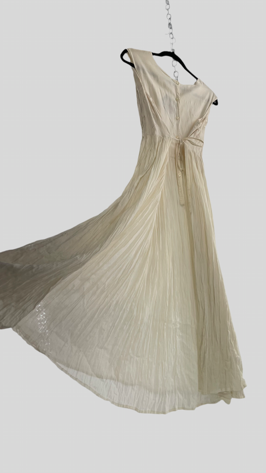 Vintage Made in India 1960s/1970s 95% Cotton Off White Karavan Gown with Crimped Body and Embroidered Bust (Large)