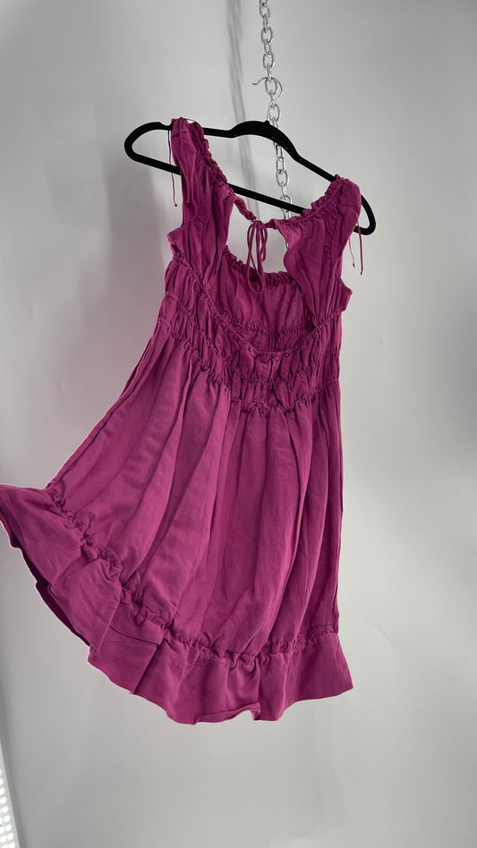 Anthropologie Mauve Cotton Dress with Smocked Bodice and Open Back (XS)