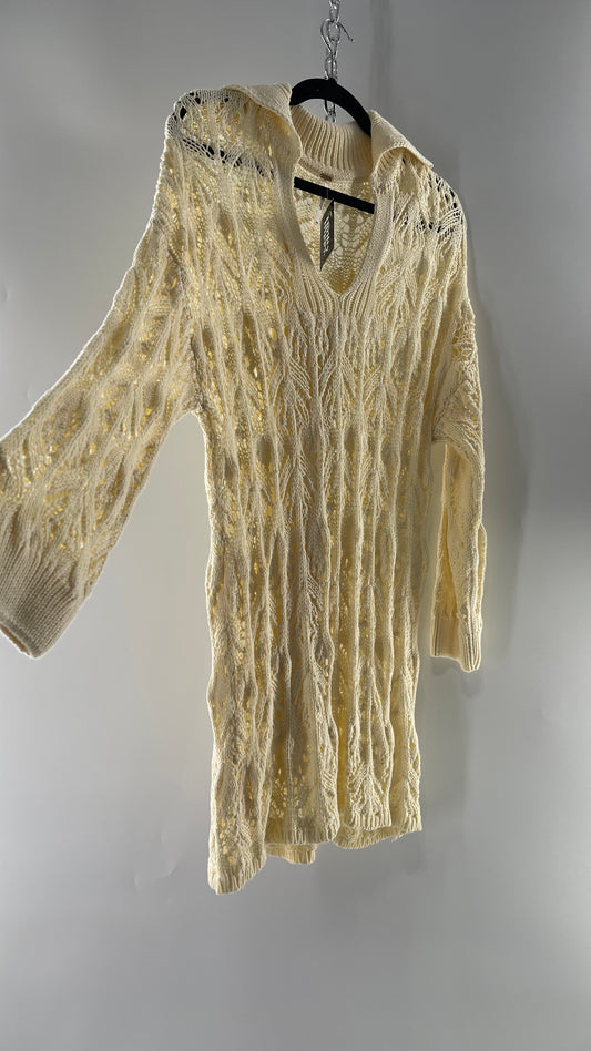 Free People Baby Yellow Comfy n Cozy Open Stitch Knit Sweater Dress (M)