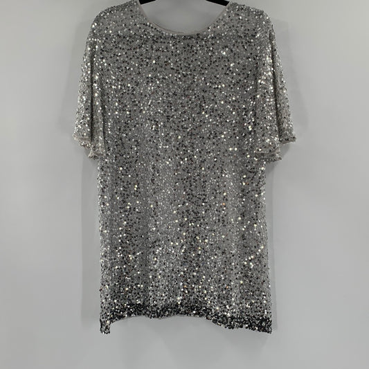 Free People Jens Pirate Booty Short Sleeve Silver Sequin Mini Dress with Dark Silver Sequin Hem (Size M)