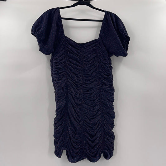 Express - Black Ruched Mesh Mini Dress (XS)