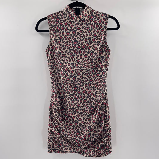 Lioness - Satin Cheetah Print Y2K Mini Dress (Size XS)