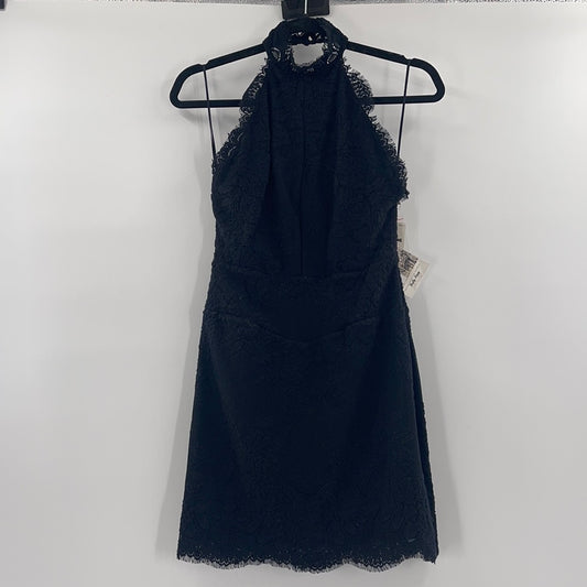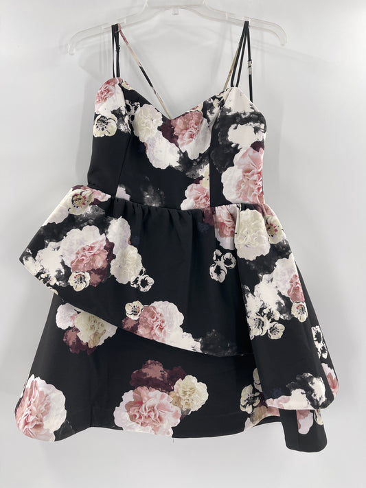 Keepsake - Anthropologie - Black Floral Backless Spaguetti Straps Ruffle Detail Mini Dress (Size L)