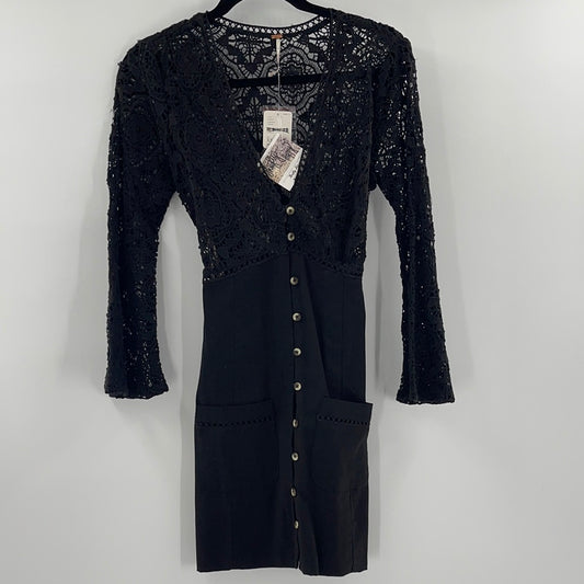Free People Black Linen + Lace Dress (XS)