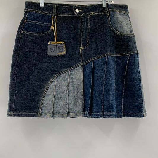 Crest Jeans Light Wash and Dark Denim with Pleated Hem Detail Mini Skirt (Size 17/18)