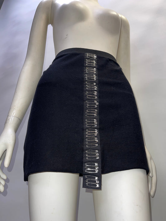 BSBW Safety Pin Bodycon Elastic Waist Black Mini Skirt (Size S)