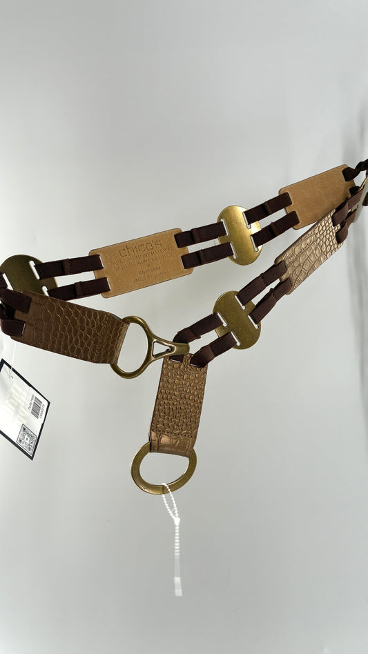 Vintage CHICO’s Bronze Embossed Leather and Metal Ring Belt (Medium)