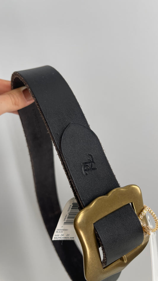 Vintage Ralph Lauren Black Genuine Leather Belt With Brass Buckle (24)