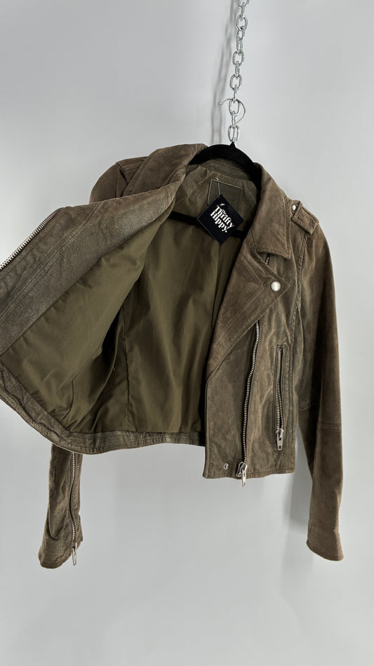 Vintage SL8 Genuine Suede Leather Motorcycle Style Jacket (Medium)