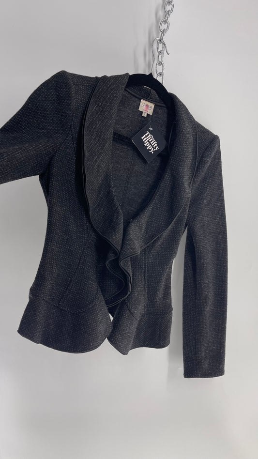 Armani Collezioni 100% Wool Thin Tailored Cropped Blazer with Shoulder Pads and Corset Like Button Front Detailing (2)