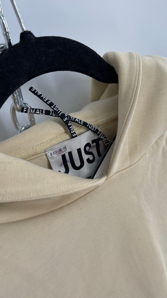 JUST Female Baby Yellow Thick Hoodie with Neon Green Logo Trim (Medium)