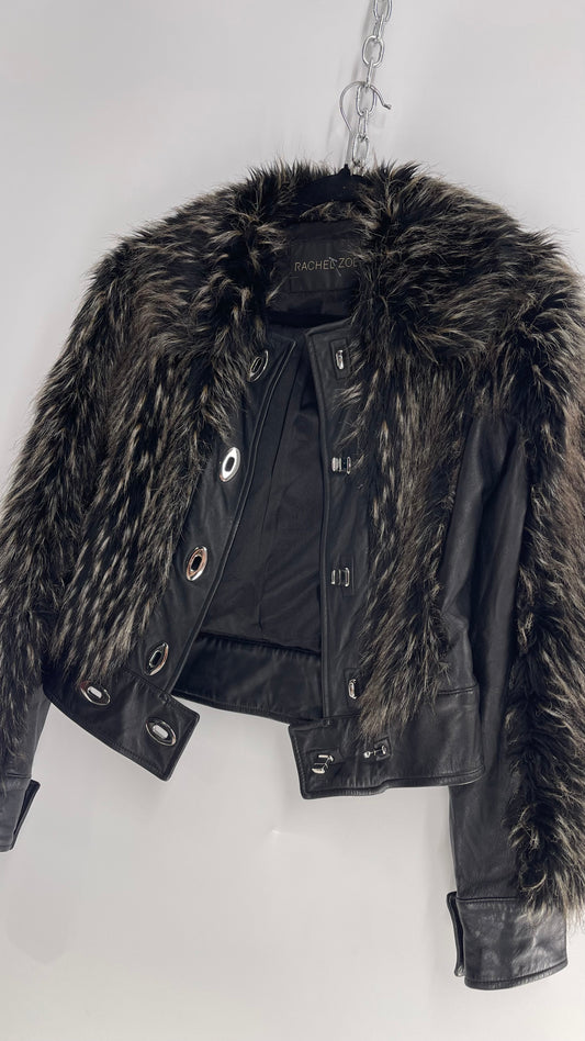 Vintage Rachel Zoe Black Leather Faux Fur Moto Jacket with Silver Hardware/Closure (2)