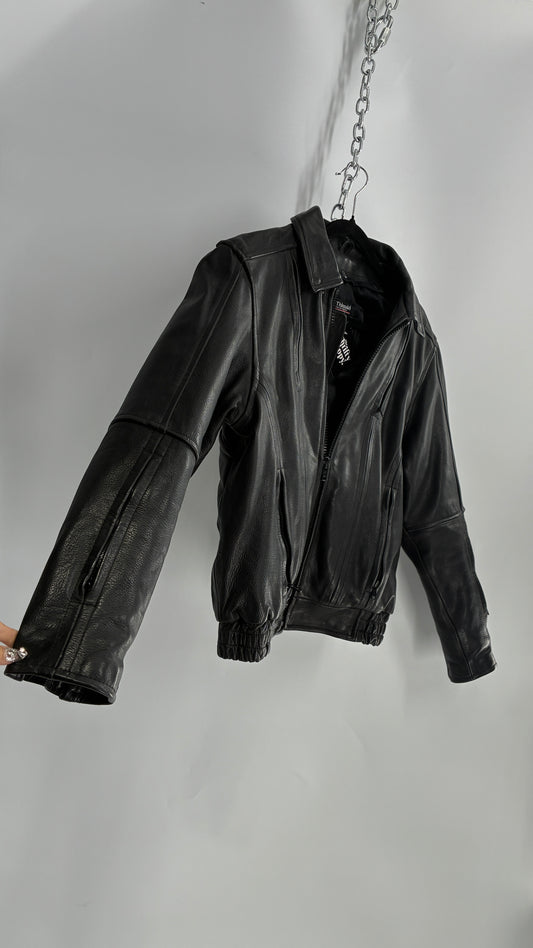 Thinsulate RAIDER Black Leather Motorcycle Bomber Jacket (12)