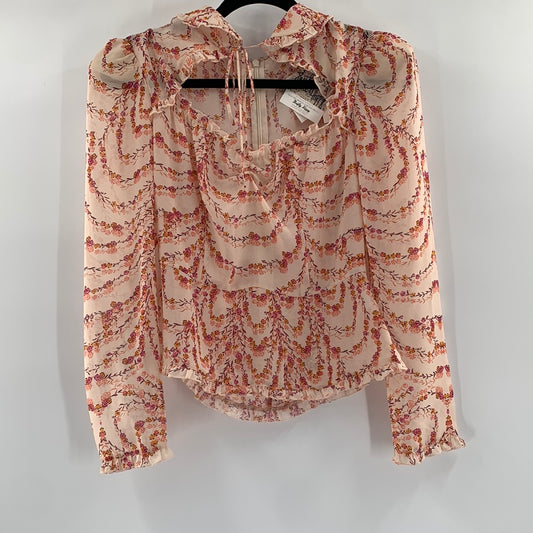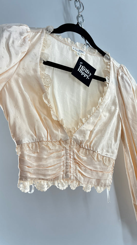 For Love & Lemons Ivory Balloon Sleeve Ruched Waist Blouse (XS)