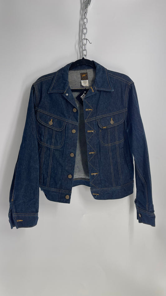 Vintage 1970s LEE Dark Wash PATD 153438 Denim Jacket with Contrast Stitching USA Union Made (38)