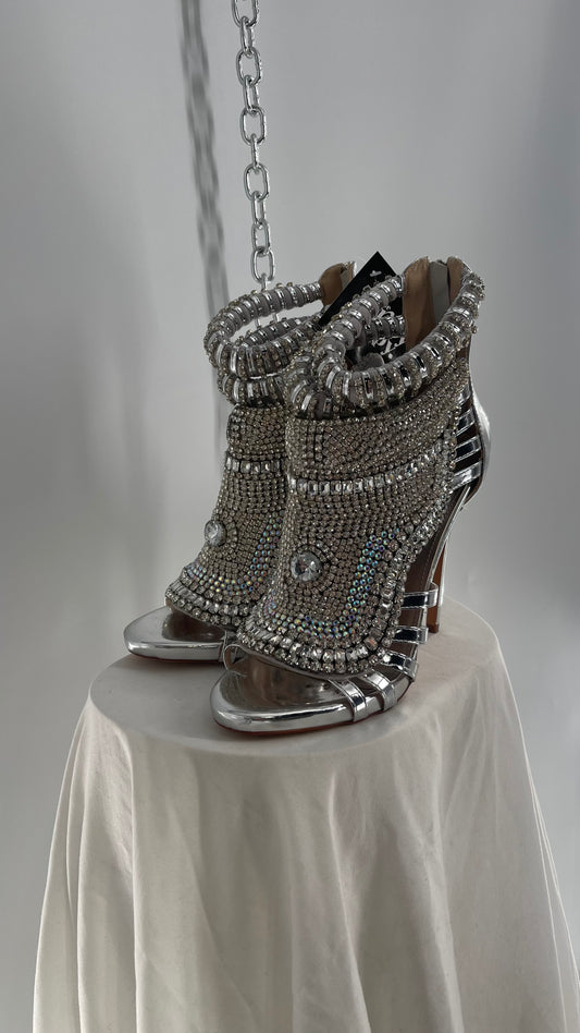 AZALEA WANG Platinum Silver Pusher Crystal Rhinestone Embellished Heel with Ankle Straps (10)