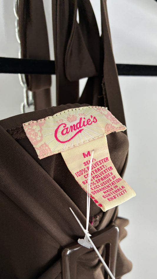 Vintage Candies Brown Patterned Gown with Belted Bust and Halter Neckline (Medium)