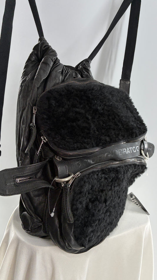 GIORGIO BRATO Black Lamb Leather Convertible Shoulder Bag and Backpack