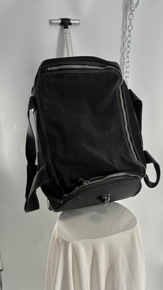 Vintage KIPLING Black Rolling Luggage Duffle Bag Suitcase with Extendable Handle